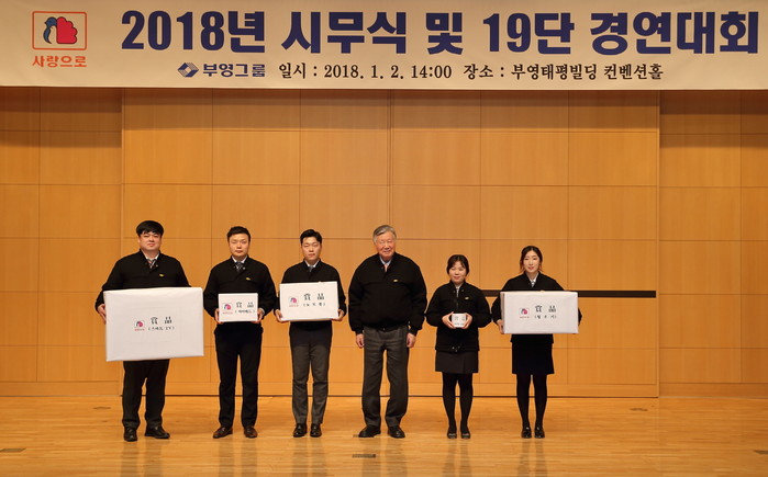 부영그룹(회장 이중근)이 ‘19단 경연대회’라는 이색 시무식으로 2018년도를 시작했다. 부영그룹은 2018년 1월 2일 부영태평빌딩 컨벤션홀 개최된 시무식에서 ‘19단 경연대회’ 본선과 결선을 함께 진행했다고 밝혔다.