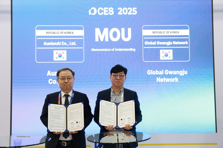 광주광역시 출연기관인 GGN글로벌광주방송은 10일(현지시간 9일) 미국 라스베이거스에서 열린 세계 최대 전자‧정보통신기술전시회인 ‘CES 2025’ 통합한국관 내 광주관에서 AI 자동 번역·더빙 솔루션기업인 ㈜오니온에이아이와 업무협약(MOU)을 체결했다. 이날 행사에는 홍나순 광주시 창업진흥과장과 김홍국 오니온에이아이 대표 등이 참석했다.