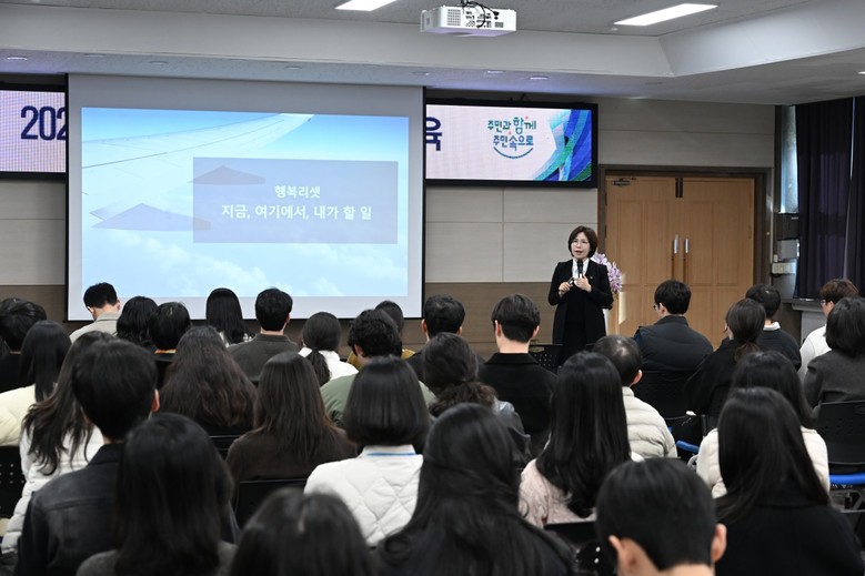 이번 교육은 강은미(한국인재경영교육원 대표) 강사가 ‘친절은 공직 혁신의 첫걸음’이라는 주제로 민원응대 역량 강화를 위해 ▲전화 및 민원응대 시 갈등과 오해를 줄이는 방법 ▲친절·공감·경청 스킬의 실천적 적용 방법 ▲민원응대에서 흔히 발생하는 실수 유형 등 사례 중심의 교육을 진행했다.