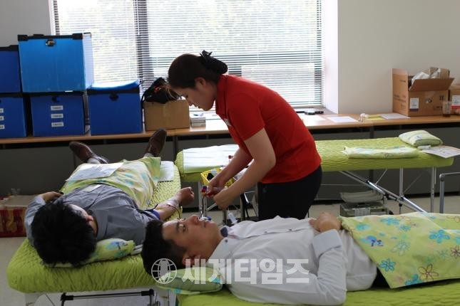 [세계타임즈 김장수 기자]The-K손해보험은 지난 14일, ‘세계 헌혈의 날’(6.14)을 맞아 대한적십자사와 함께 서울 종로구 본사에서 임직원을 대상으로 단체 헌혈을 실시했다.