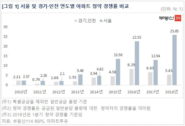 서울, 경기·인천간 청약 경쟁률 격차, 올 해 1분기에도 여전