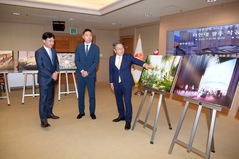 보고회에서는 나원중 더현대 광주 법인장이 ▲건축 전반에 대한 개요 및 추진 경과 ▲착공 등 향후 공사 일정 ▲공사가림막에 표현되는 디자인 방향성 ▲쇼핑·문화·예술이 어우러진 주요 공간 구성계획 등 콘텐츠에 대해 발표했다. 또 더현대 광주의 비전과 내부 공간을 소개하는 영상도 시청했다.