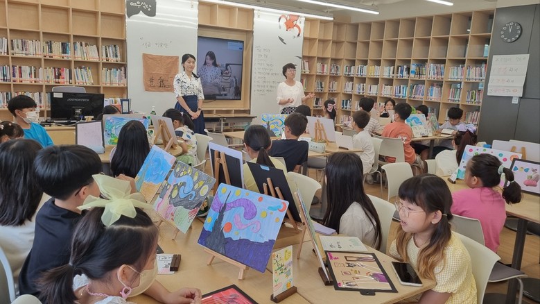 이번 활동에 참여한 신동하(3학년) 학생은 “책이 좋아서 3일 신청했는데 엄마 선생님들과 함께 책을 통해 화가와 작품에 대해 알게 된 좋은 시간이었고. 다양한 방법으로 작품을 만들어 볼 수 있어서 더 재미있었다.” 송해인(5학년) 학생은 “너무 더운 날씨라고 하는데 도서관 프로그램에 참가하니 더운 줄 모르고 시원하고 즐거웠다. 책을 읽은 후 작품을 만들어 전시하니 더 뿌듯한 마음이 들었다.”라고 참여 소감을 이야기하였다.