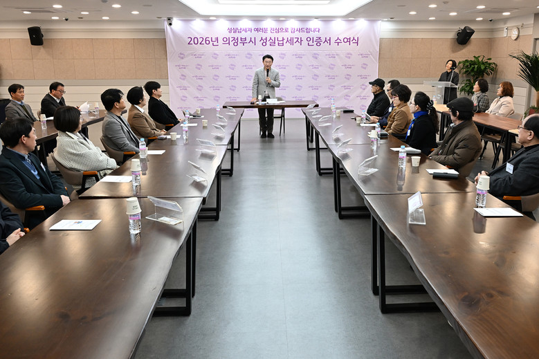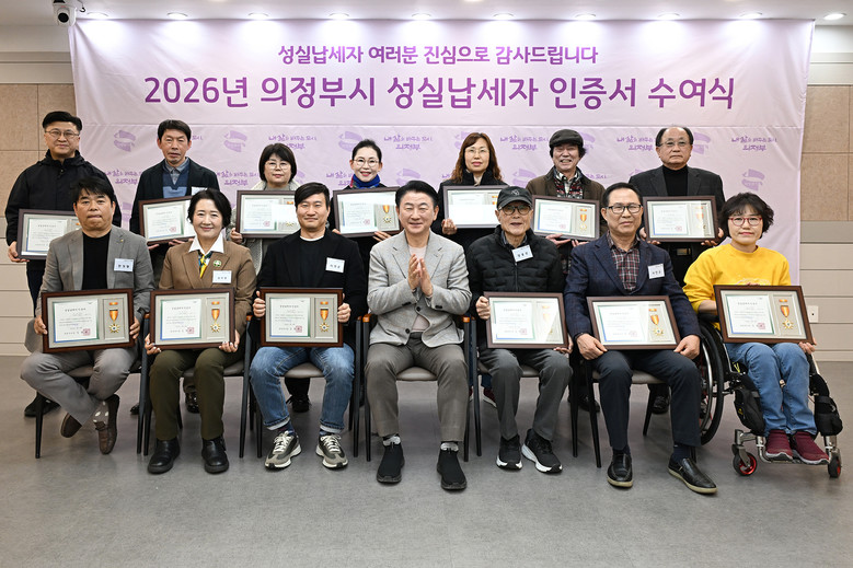 이번 수여식은 지방세를 성실히 납부한 납세자를 예우하고 감사의 뜻을 전하기 위해 마련한 자리로, 성실납세자로 선정된 개인과 법인 13명이 참석했다.