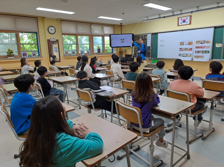 특히 ‘영양·식생활 교육주간’은 교장 선생님이 직접 1~6학년 전체 학급의 학생들을 대상으로 수업하고 있으며, 식사와 관련된 바른 생활 습관을 형성하도록 평소 자신이 즐겨 먹는 음식을 자연식품과 가공식품으로 구별하고 우리 반 친구들이 즐겨 먹는 음식이 무엇인지 알아보면서 어떤 음식을 먹어야 내 몸이 건강할 수 있는지 학생의 눈높이에 맞는 다양한 수업 자료를 직접 준비하셨다. 4월 22일에는 2학년, 24일 3학년, 25일 4학년, 29일 5학년, 30일 1학년, 5월 1일에는 6학년으로 수업이 예정되어 있다.