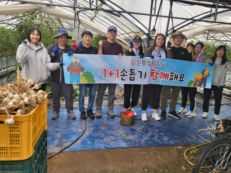이번 활동은 강원특별자치도 친환경농업과가 추진 중인 ‘농촌일손돕기 릴레이 활동 및 범도민 1+1손돕기 캠페인’의 일환으로, 도내 농가의 인력 지원과 나눔 문화 확산을 위해 마련됐다.