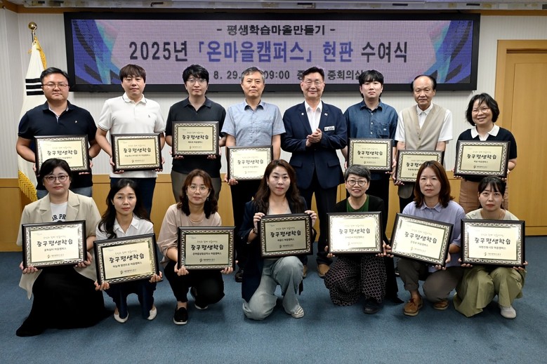 [중구 세계타임즈=이채봉 기자] 대전 중구(구청장 김제선)는 지난 29일에‘평생학습마을만들기 2025년 온마을캠퍼스 현판 수여’행사를 개최했다고 밝혔다.