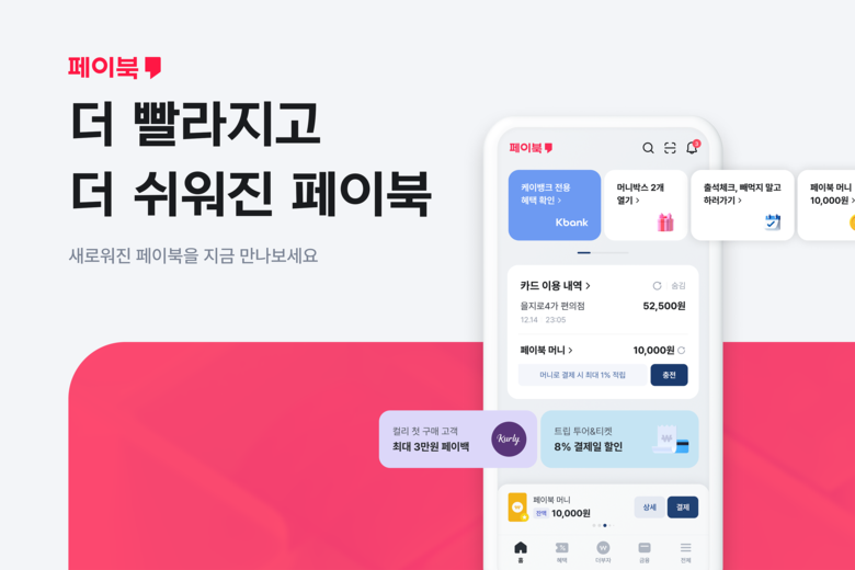 고객이 자주 이용하는 메뉴에 대한 접근성도 높였다. 앱테크 고객이 증가함에 따라 페이북 혜택을 모은 ‘퀵메뉴’와 ‘머니박스(카드 결제 혹은 출석체크 시 페이북머니를 추가로 주는 리워드 서비스)’ 등을 손쉽게 접근할 수 있도록 했다. 카드 사용 고객의 니즈 또한 반영해 홈 화면에서 ‘마이태그’, ‘실적충족’, ‘받은 혜택’은 바로 확인 가능하며 카드 등록·결제 버튼을 상단에서 하단으로 배치해 한 손으로도 터치 가능하도록 최적화했다.