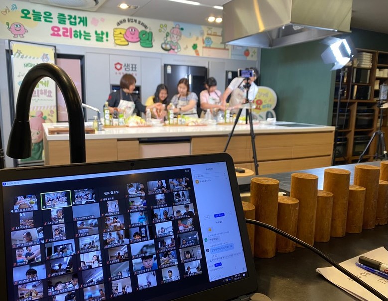 사전 신청을 통해 선정된 80여 가족이 온라인(ZOOM)으로 참여하고, 그중 한 가족은 샘표 본사 1층 우리맛 공간에 초대되어 현장에서 우리맛 연구원과 함께 요리를 진행하였다.