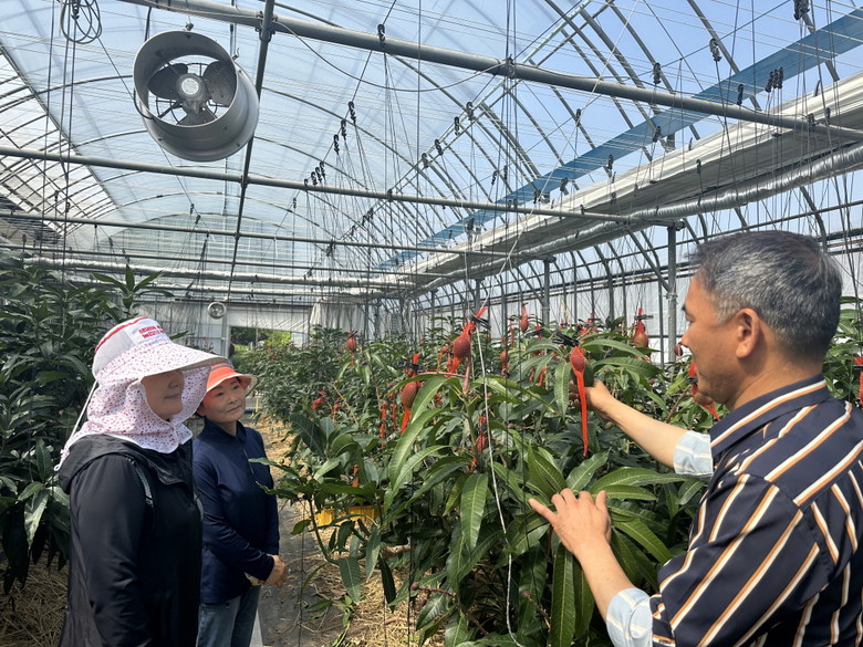 [고흥군 세계타임즈=우덕현 기자] 고흥군(군수 공영민)은 애플망고 품질 향상과 안정적인 생산량 증대를 위해 개화기와 과실비대기에 맞춰 관내 애플망고 재배 농가 10여 곳을 대상으로 현장 중심의 기술지도를 강화하고 있다고 밝혔다.