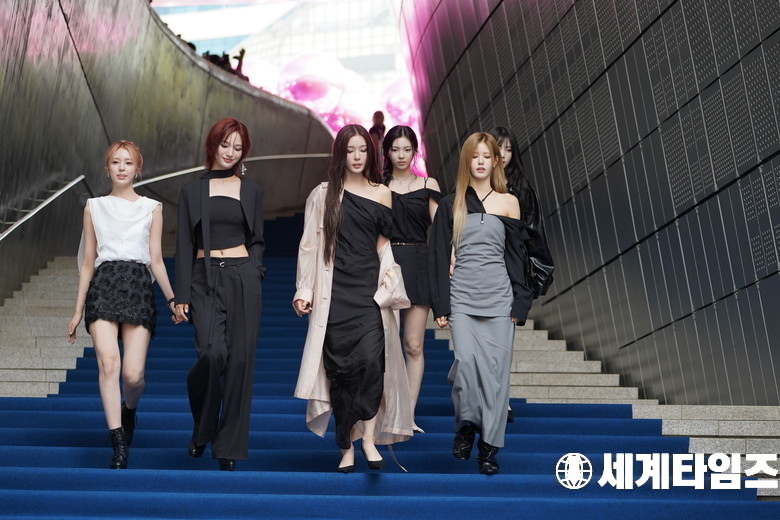 그룹 '이프아이'가 5일 서울 중구 동대문디자인플라자(DDP)에서 열린 2026 S/S서울패션위크 '리이' 컬렉션에 참석해 블루카펫을 내려오고 있다.