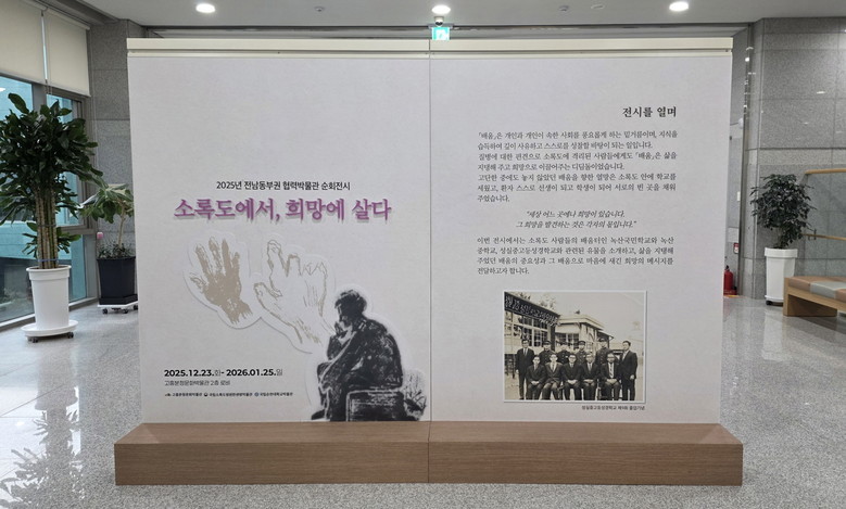 [고흥군 세계타임즈=우덕현 기자] 고흥군(군수 공영민) 분청문화박물관은 12월 23일부터 내년 1월 25일까지 박물관 2층 로비에서 ‘소록도에서, 희망에 살다’라는 주제로 전남 동부권 협력박물관 교류전시를 개최한다고 밝혔다.