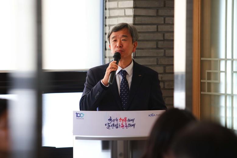 한국마사회 정기환 회장은 “올해 한국경마 100년을 맞이한 한국마사회는 앞으로 새롭게 도약하고자 하는 의지를 담아 새로운 비전과 전략체계를 수립하고 강도 높은 경영혁신을 추진하는 등 국민신뢰 회복을 위해 노력했다”며, “올해의 성과를 바탕으로, 내년에도 공공분야 혁신을 선도하는 공기업이 될 수 있도록 쉬지 않고 달려가겠다.”라는 포부를 밝혔다.