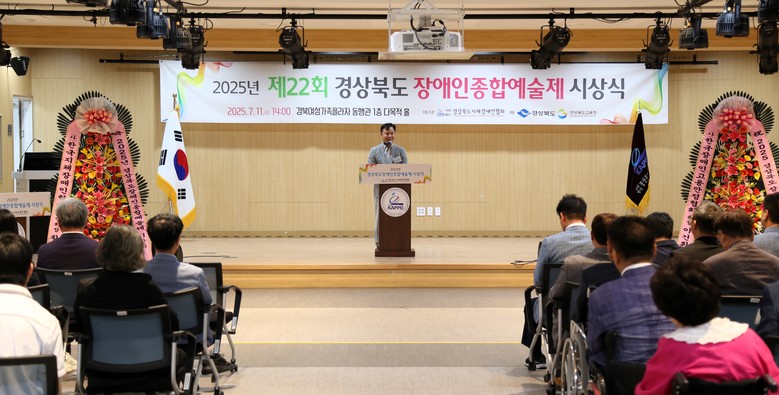 - 11일, 경북여성가족플라자, 수상작 시상 및 작품 전시 - [경북 세계타임즈=한윤석 기자] 경상북도는 11일 경북도청신도시 내 경북여성가족플라자에서 사단법인 한국지체장애인협회 경북협회에서 주관하는 ‘2025년 경상북도 장애인종합예술제’시상식을 개최했다.