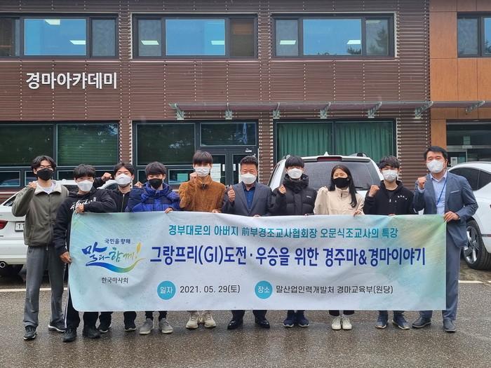 [세계타임즈 심귀영 기자]한국마사회(회장 김우남) 경마아카데미에서는 지난 29일(토) 오문식 前 조교사를 초청해 기수후보생들에게 특강을 실시했다. 오문식 前 조교사는 현역시절 대상경주를 무려 14번 우승했으며, 최고 경주인 ‘그랑프리’ 우승의 영광까지 안았던 부경 대표 조교사다.