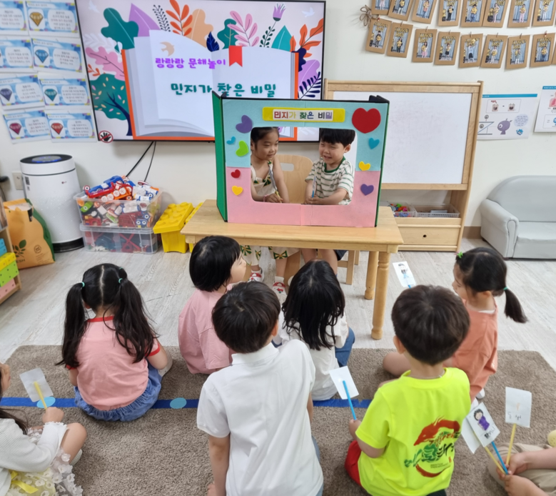 유아들이 이야기 속 등장인물을 손가락 인형, 손 인형으로 표현하고 직접 만든 막대 인형으로 인형극을 보여주며 표현력과 발표력이 향상 되었다. 역할을 정해 대사를 주고받는 동극 활동을 통해 공감 능력, 협동심, 언어적 표현력을 자연스럽게 향상되었다.