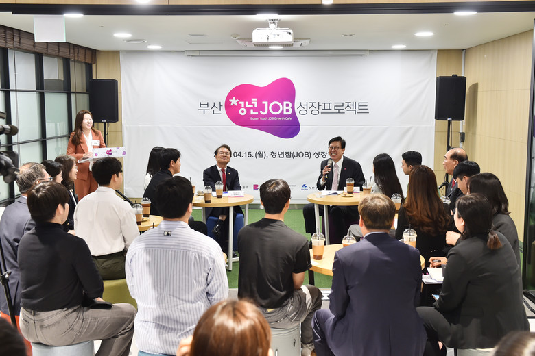 ◈ 4.15. 10:30 청년 중심 통합(원스톱) 고용서비스 지원을 위한 '부산 청년잡(JOB) 성장카페' 발대식 개최… 박형준 시장, 고용노동부 장관, 지역 청년 등 20여 명 참석