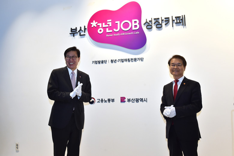 이날 박 시장과 이 장관은 '부산 청년잡(JOB) 성장카페' 개소를 기념하는 현판식을 한 후 간담회에 참석해 현장의 소리를 직접 들으며 청년카페의 운영 방안에 대한 의견을 수렴했다.