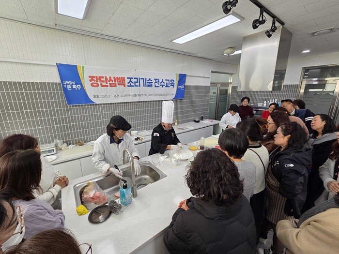 [파주시 세계타임즈=송민수 기자] 파주시는 지역 대표 특산물인 ‘장단삼백(장단콩, 파주개성인삼, 한수위쌀)’을 활용한 조리기술 전수 교육을 성공적으로 마무리했다고 밝혔다.