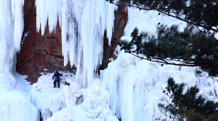 [인제군=세계타임즈 김민석 기자] 강원소방 119특수구조단은 11일 인제 용대리 매바위에서 겨울철 산악안전사고에 대비해 빙벽긴급구조 훈련을 실시했다.