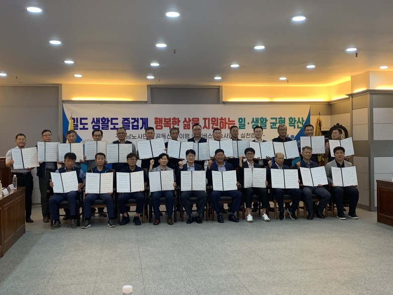 노사는 유연근무와 시차출퇴근제로 일하는 방식을 바꾸고, 다양한 워라밸 지원제도 활용과 연차사용 활성화를 포함한 근무혁신 10대 제안을 실천하며, 육아휴직, 가족돌봄휴가, 육아기 근로시간 단축 등 출산육아를 장려하는 기업문화 조성을 적극 추진하기로 했다.
