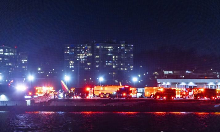 29일(현지시간) 미국 워싱턴 로널드 레이건 공항 인근에서 소방당국이 수색 및 구조 작업을 수행하고 있다