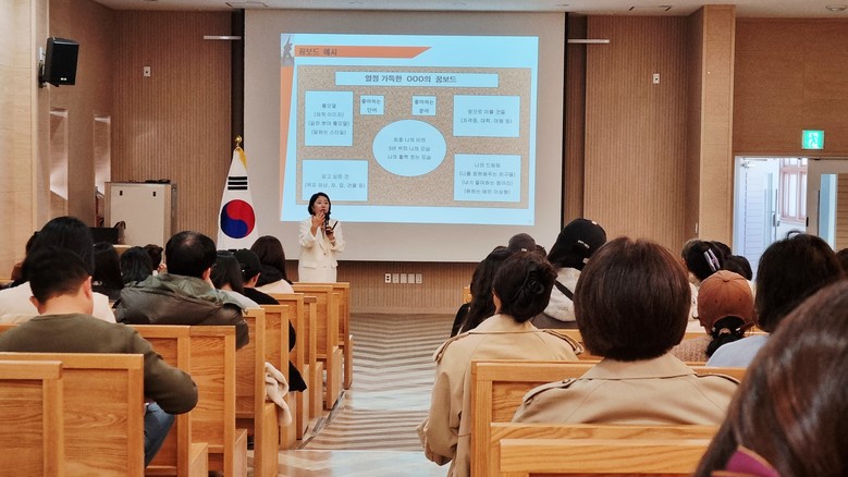 강의는 한국청소년센터 대표이자 인권교육연구소 소장인 원은정 강사가 진행하였다. 강사는“부모의 시선이 곧 아이의 자존감이 된다.”는 메시지를 중심으로, 자녀를‘문제의 원인’이 아닌‘이해의 대상’으로 바라보는 심리학적 접근법을 제시했다. 이어 ▲가족의 일상 소통 3가지(안부·환대·감사) ▲낙인이론을 통한 인식 전환 ▲존재 칭찬법 6가지 등 실천 중심의 대화 전략을 소개하며 부모-자녀 간 신뢰 회복을 위한 구체적인 방법을 전달하였다.