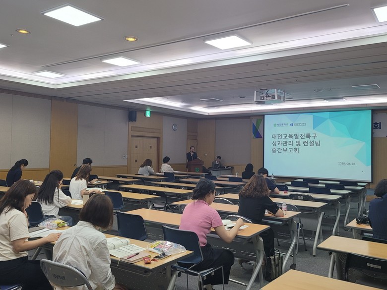 - 78개 성과지표 중간 진단, 10월 최종보고회 예고 - [세계타임즈=대전 이채봉 기자] 대전시는 8월 26일 시청 3층 세미나실에서‘대전교육발전특구 성과관리 및 컨설팅운영 중간보고회’를 열고, 57개 시행과제의 추진실적과 우수사례를 공유하며 78개 성과지표 달성도를 점검했다.