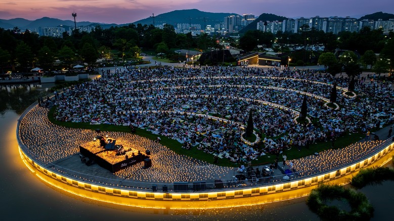 | ▲ 지난 6월 순천만국가정원 캔들라이트 행사에서 관람객들이 공연을 관람하고 있다 |