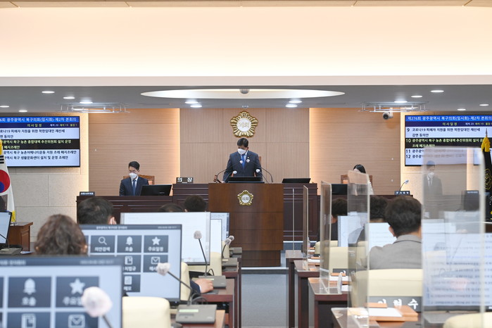 [북구=세계타임즈 손권일 기자] 광주 북구의회(의장 표범식)는 제1차 추경예산안, 행정사무조사 결과보고서 등을 의결하기 위해 8일 제276회 임시회 제2차 본회의를 개의했다고 밝혔다.