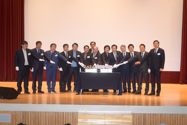 강기정 광주광역시장이 지난 8일 오후 시청 대회의실에서 열린 광주기독교교단협의회 신년하례회에 참석해 참석자들과 신년 떡케이크 커팅을 하고 있다. /광주광역시 제공