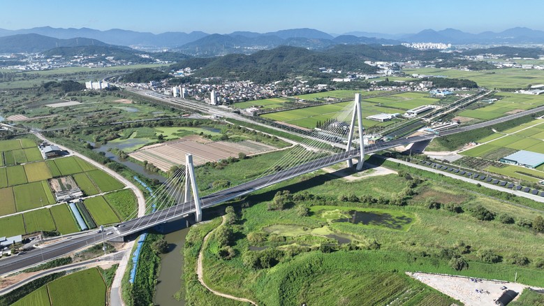 화포대교는 화포천 습지를 가로지르는 총연장 580m의 사장교로, 112m와 77m 높이의 비대칭 2주탑 구조가 특징이다. 이러한 독창적인 설계와 시공 기술이 학회의 높은 평가를 받아 금상의 영예를 안았다.