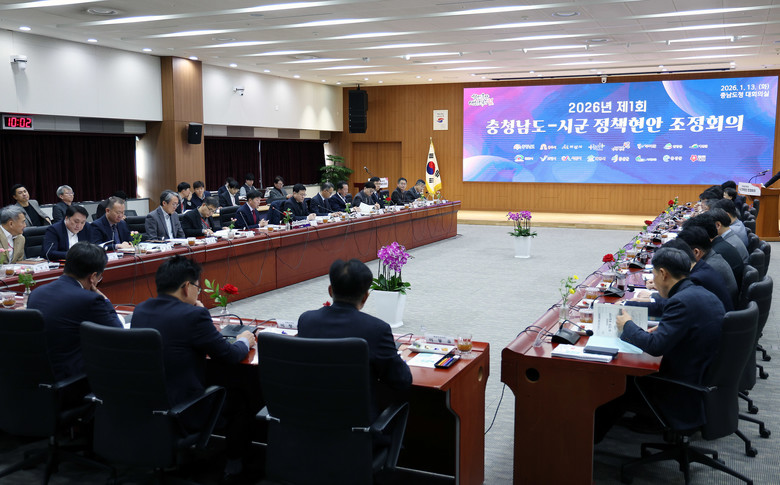 도는 13일 도청 대회의실에서 박정주 행정부지사 주재로 부시장·부군수 및 실·국·본부장 등이 참석한 가운데, ‘2026년 제1회 도·시군 정책현안 조정회의’를 개최했다.