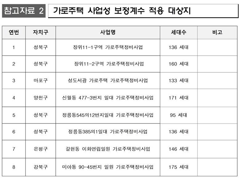 ② 모아타운 외 가로주택도 보정계수 적용…8개소 심의 통과로 사업성 향상
