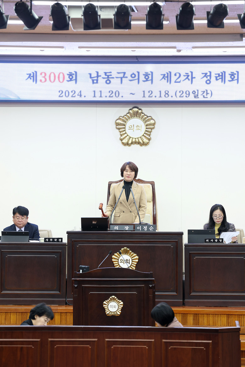 남동구의회는 오는 10일부터 16일까지 상임위원회별로 2025년도 예산안 및 기금운용계획안 등을 심사하고 17일 예산결산특별위원회 종합심사를 거쳐 18일 제3차 본회의에 최종 상정될 예정이며, 제3차 본회의를 끝으로 제300회 제2차 정례회의 모든 일정이 마무리될 예정이다.