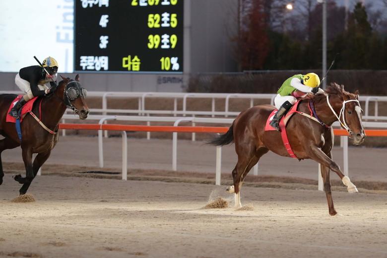 올해 7, 10월 차례로 출전한 2000m 1등급 경주에서 연달아 우승하며 물오른 기량을 보여주고 있다. 작년 ‘대통령배’에서는 아쉬운 3착에 머물렀으나, 최근 2000m 경주 기록을 작년보다 앞당기며 이번 대회 전초전을 성공적으로 마친 상태다. 장거리 주력마로서, 그동안 2000m 경주에 총 7회 출전하여 1착 4회, 3착 3회로 연승률 100%를 기록하고 있다. 2000m 출전경험과 우승 횟수로만 보면 출전마 중 가장 우수하다고 할 수 있다. 다른 우승 후보마들에 비해 대상경주와 같은 큰 대회 우승 경험이 부족하다는 점이 변수이긴 하나, 2000m 강자로서의 실력을 이번 대회를 통해 확실히 입증할 수 있을지 이목이 집중된다.