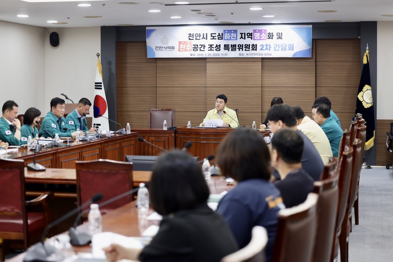 이번 간담회는 천안시 도심하천이 직면한 수질, 공간 설계, 접근성, 경관, 주민 참여 등 주요 문제를 종합적으로 점검하고, 각 부서별 개별 사업 간 연계 가능성과 공통 과제를 파악하기 위해 마련됐다.