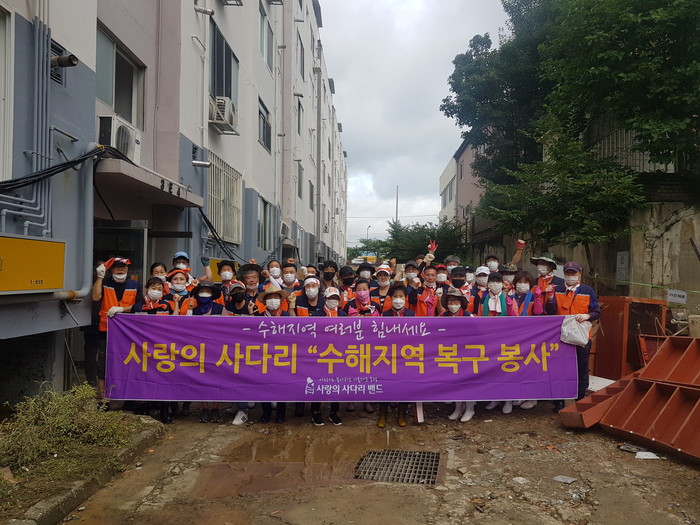 [대전=세계타임즈 이채봉 기자] 대전시 SNS 9천명 봉사단체 사랑의 사다리 밴드(리더 이정제)는 2일, 오전9시~오후1시, 코스모스 아파트 수해피해 현장에서 수해복구 봉사로 실의에 빠진 수재민에게 우리 사회의 따듯한 사랑을 전달하였다.