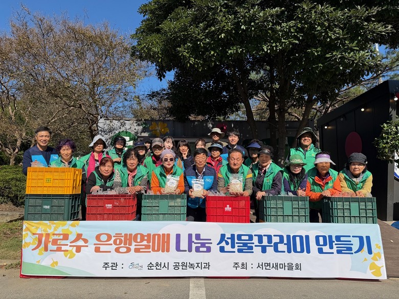 [순천시 세계타임즈=우덕현 기자] 순천시(시장 노관규)는 지난 29일 서면행정복지센터에서 서면 새마을회(회장 윤흥준) 등과 함께 ‘가로수 은행나무 열매 나눔 선물 꾸러미 만들기’ 행사를 진행했다고 밝혔다.