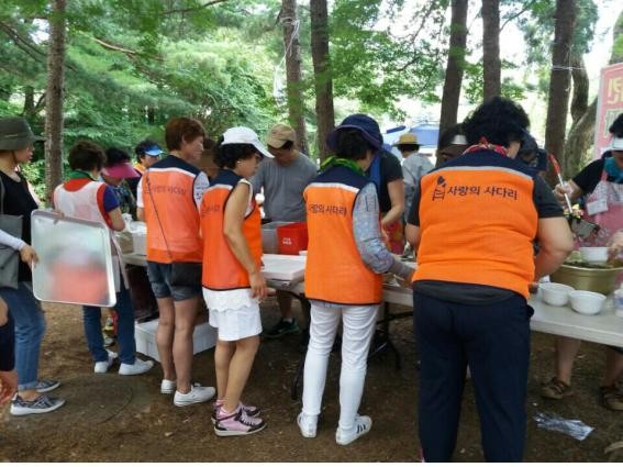 이날 봉사에는 나눔봉사단 유희자 단장을 비롯해서 16명의 회원들이 뜨거운 날씨에도 구슬땀을 흘리면서