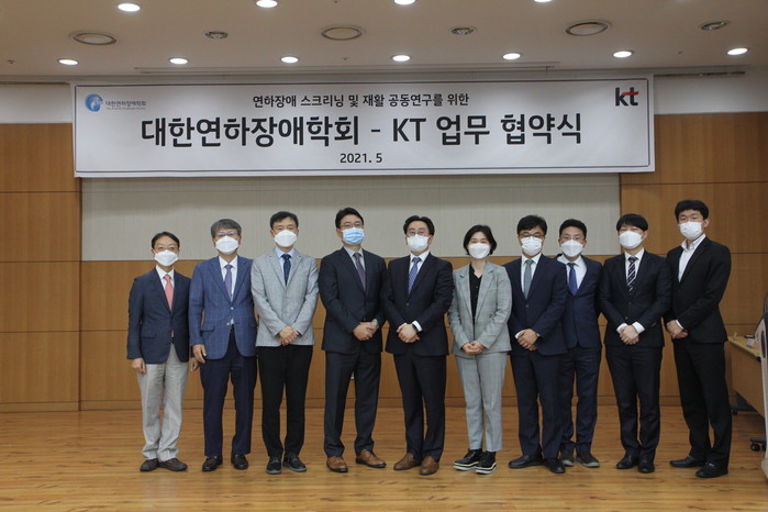 KT와 대한연하장애학회는 지난 28일 서울 송파구 서울아산병원에서 ‘연하장애 스크리닝 및 재활 공동연구를 위한 업무협약(MOU)’을 체결했다고 30일 밝혔다.