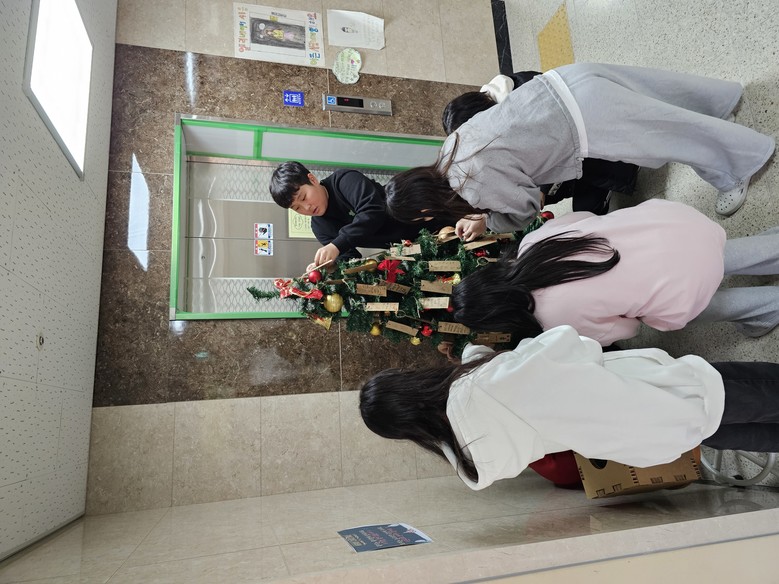 12월 20일∼ 12월 28일 첫 번째 이벤트: 각 층에 트리를 설치하고 학생들이 한 해를 보내면 가장 행복했던 순간, 새해 소원 등 ‘자유로운 주제로 트리 오너먼트를 만들어 트리를 꾸미는 활동’이다.