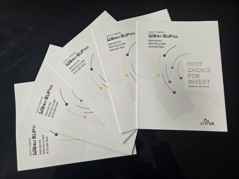 발송된 가이드북에는 ▲새만금과 연계한 미래 산업지도, ▲교통·물류 인프라, ▲산업단지 및 김제자유무역지역 현황, ▲기회발전특구 특례·보조금 등 인센티브가 담겼다.