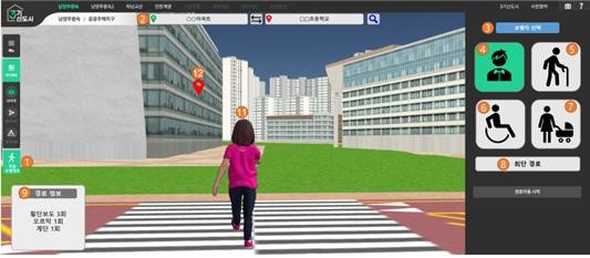 학생 부문 최우수작은 3기 신도시 3차원 가상도시 체험서비스에서 어린이, 장애인, 고령자와 같은 교통약자를 위해 보행 경로상의 경사도, 계단, 인도폭 등을 감안한 맞춤형 최적경로 안내 방안을 제안했다.