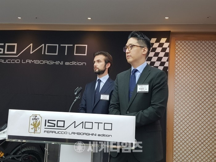 람보르기니 가문의 3세인 페루치오 람보르기니와 지피씨씨코리아는 이날 서울 중구 한국의집에서 기자간담회를 갖고 지난 2년간 공동개발한 전기스쿠터 '이소모토 페루치오 람보르기니 에디션'을 공개했다.