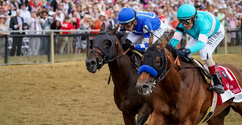 제148회 프리크니스 스테익스에서는 켄터키더비 깜짝 우승마인 ‘메이지(Mage)’가 우승을 차지하여 과연 2018년 이후 새로운 삼관마 등극에 한걸음 더 다가설 수 있을지에 관심이 집중됐다. 현지시각 20일 오후 7시, 인기마 중 하나였던 ‘퍼스트미션(First Mission)’이 출전 취소되어 총 7두가 출발대 앞에 선 가운데 긴장감 속에서 출발 신호가 울렸다. 게이트 1번을 받아 빠르게 치고 나간 ‘내셔널 트레저’는 초반부터 선두를 잡은 후 경주를 이끌었다. 마지막 직선주로에서 2위 ‘블레이징 세븐스(Blazing Sevens)’가 1위를 달리던 ‘내셔널 트레저’와 경합을 벌였지만, 결국 ‘내셔널 트레저’가 머리차로 결승선을 먼저 통과하며 와이어투와이어 승리를 거뒀다. 가장 기대를 모은 ‘메이지’는 경주 내내 3~4위를 오가며 추월 찬스를 노렸으나, 최종 3위에 그치며 아쉽게도 삼관마의 꿈을 접어야 했다.