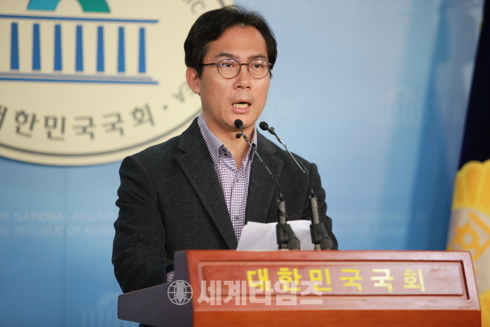 [세계타임즈 김인수 기자]자유한국당 원내대표 선거 출마를 선언한 김영우 의원이 2일 오전 국회 정론관에서 '당내 계파 전쟁과 비대위 운영' 관련 기자회견을 하고 있다. 2018.12.2