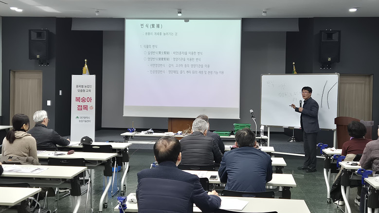대구농업기술센터는 3월 6일(금) 오후 1시 30분부터 5시 30분까지 센터 3층 강당에서 ‘품목별 농업인 맞춤형 교육 접목반’을 운영했다. 이번 교육은 식물 번식 원리를 이해하고 과수 접목 기술을 습득해 농가의 묘목 자급률을 높이기 위해 마련됐다.