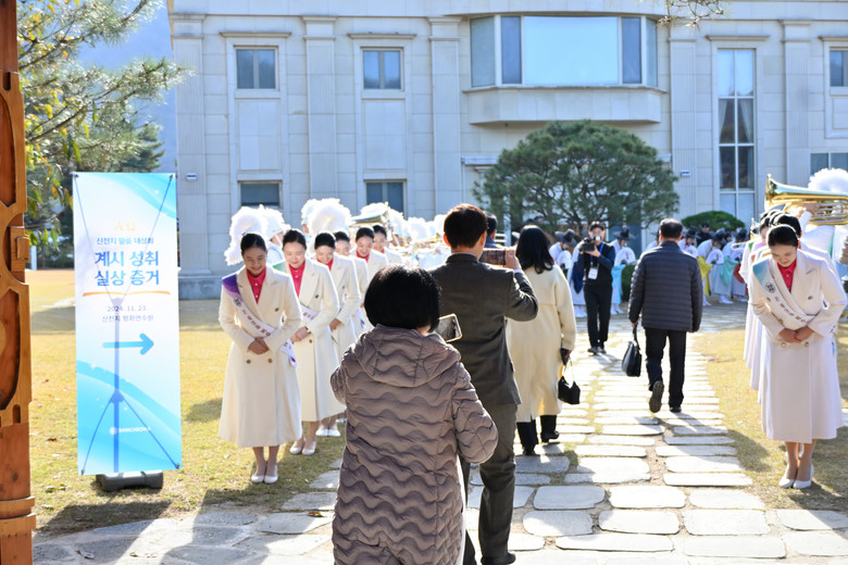 신천지예수교회 이만희 총회장은 강연자로 직접 나서 ‘계시록 전장 실상’을 주제로 말씀을 전했다. 이 총회장은 요한계시록의 전 장을 한 장씩 짚어가며 예언의 의미와 그 실체를 함께 설명했다.
