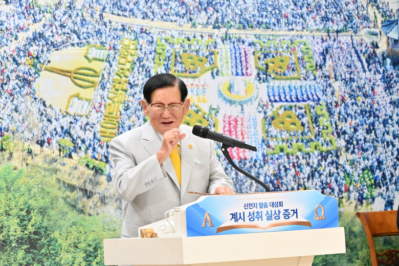 신천지예수교 증거장막성전(이하 신천지예수교회) 이만희 총회장은 23일 청평 신천지 평화연수원에서 ‘신천지 말씀 대성회 계시 성취 실상 증거’를 개최해 성경의 예언과 성취의 중요성에 대해 거듭 강조했다.